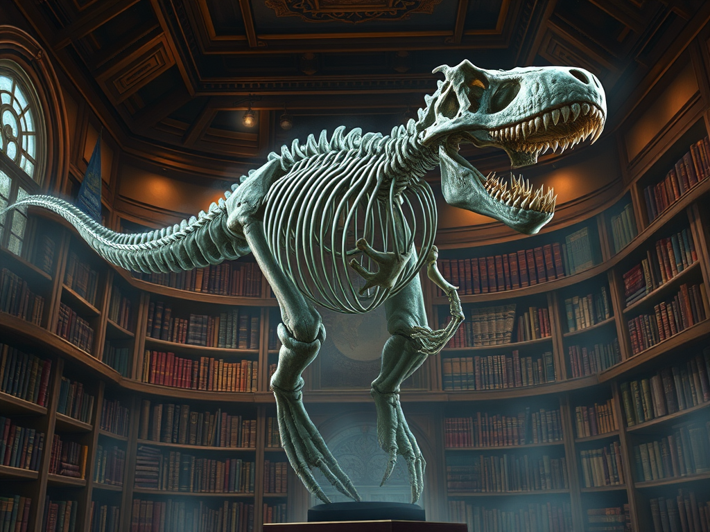 Image Credit: OpenAI Image Creator: Tyrannosaurus Rex skeleton guarding the knowledge and narratives frozen in time.